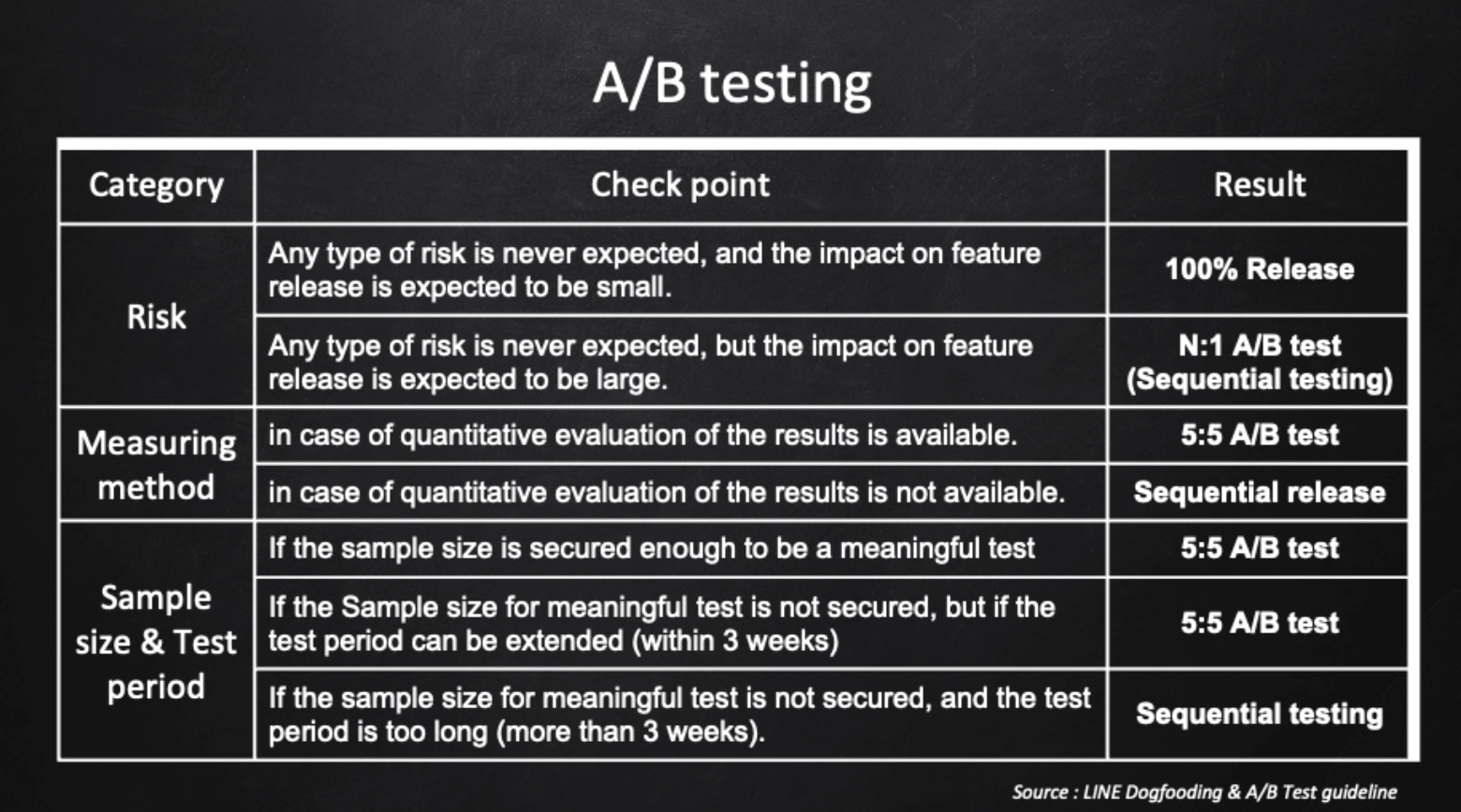 LINE은 A/B 테스트, 카나리아 릴리스, 자동화된 테스트 등 다양한 방법을 사용하여 품질을 지원하고 있다.
