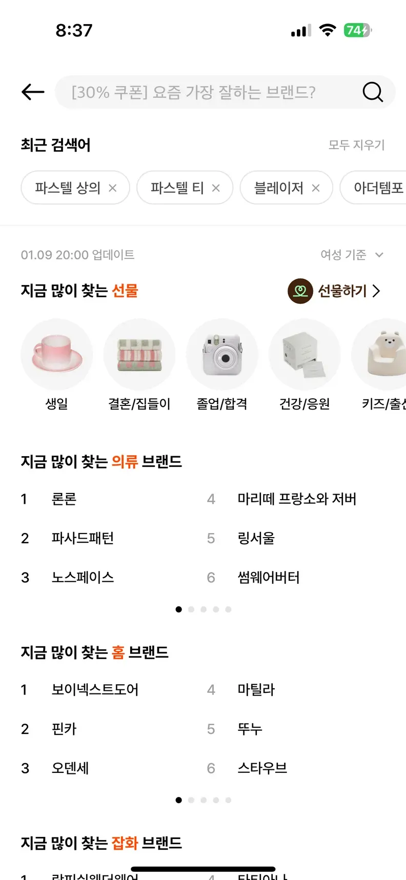 이용자의 수도 매우 중요하지만, 서비스의 입장에서는 마케팅 영역에서 많은 이익을 얻을 수 있기 때문에, 이를 적극적으로 활용하기 위해서 메인화면에 많은 브랜드를 노출 시킬 수 있도록 한게 아닐까 생각해 봅니다.