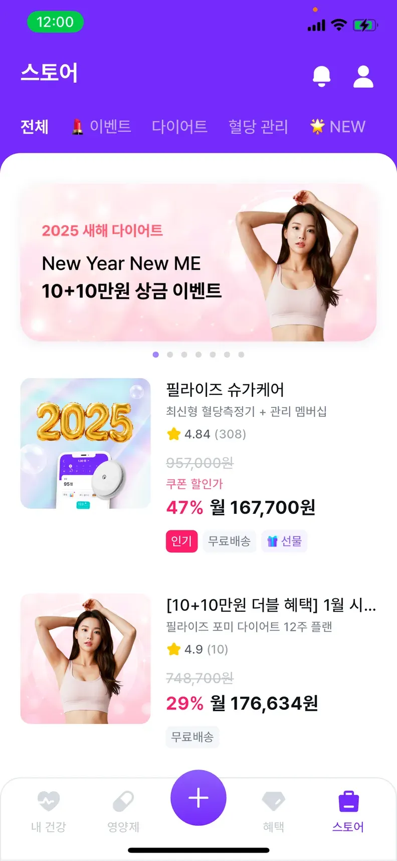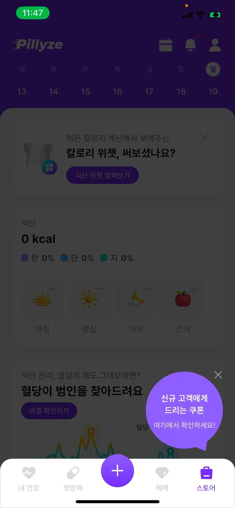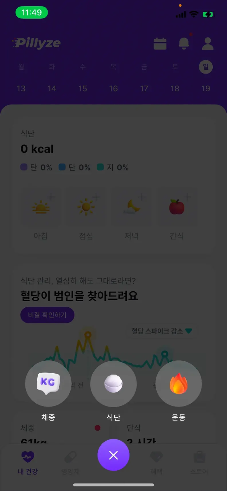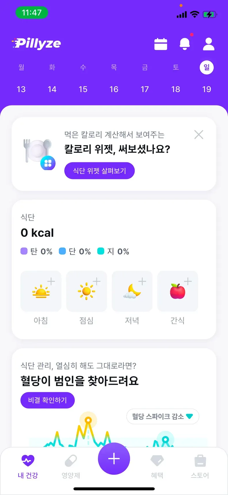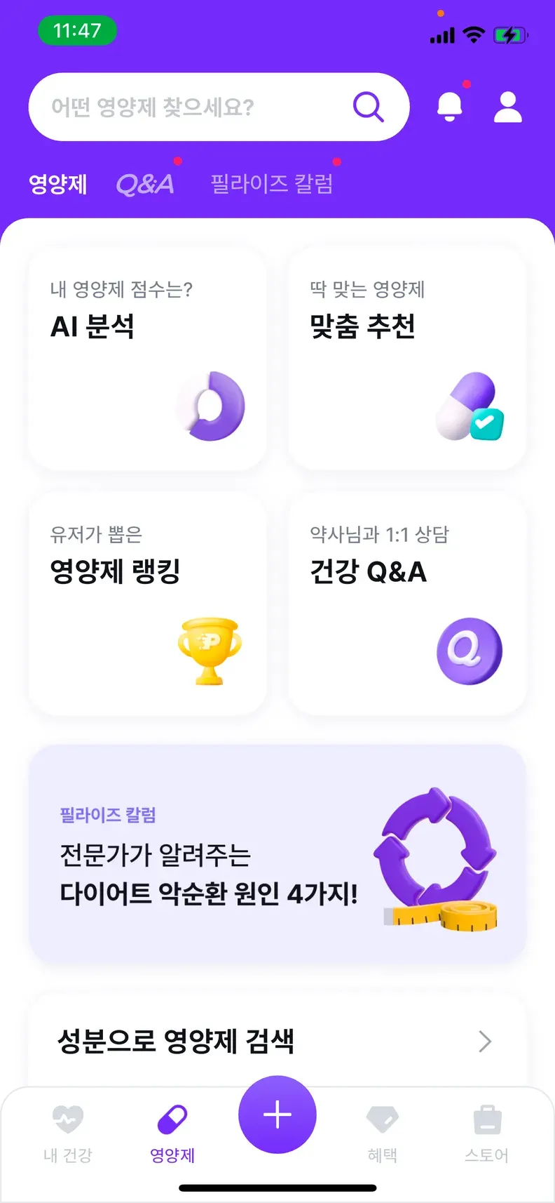건강관리 슈퍼앱. 꼼꼼한 개인 맞춤형 분석을 통한 영양제, 식단, 혈당, 수분, 운동, 컨디션, 단식, 걸음수까지 하나의 앱으로 관리할 수 있도록 도움.
