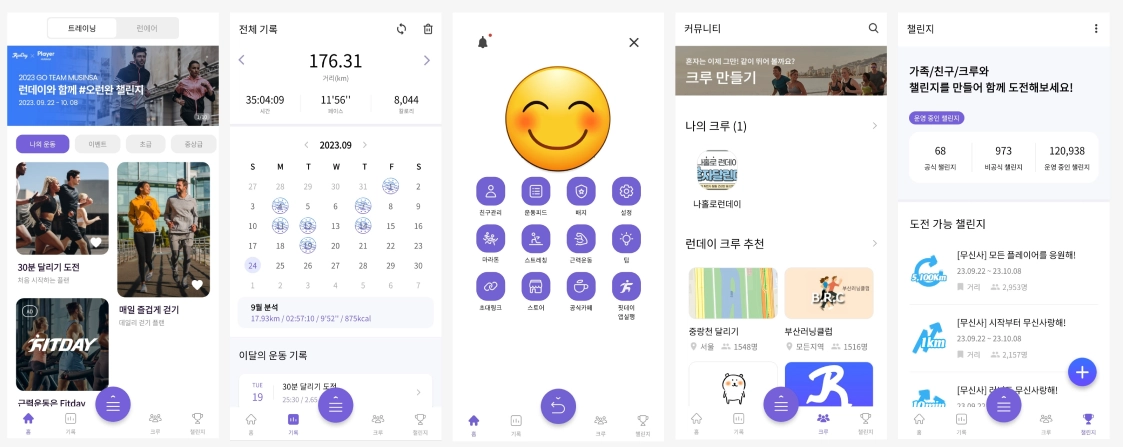 - 홈, 기록, 크루, 챌린지 외에 모든 메뉴들을 가운데 메뉴 버튼에 다 집어넣음으로써 깔끔해짐