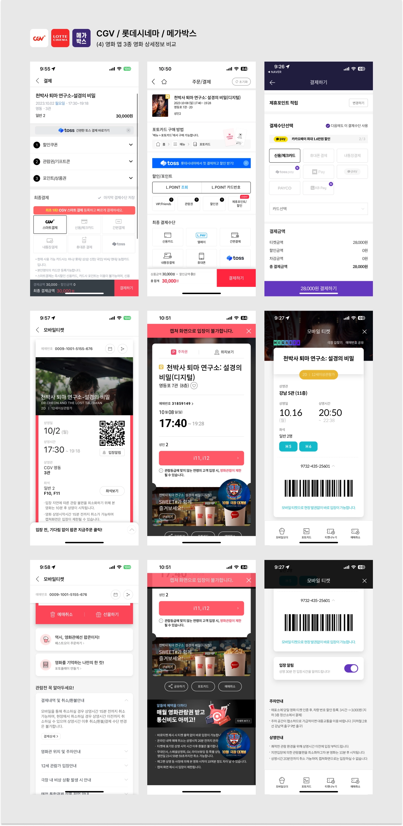 개인적으로는 결제 / 모바일 티케의 구성은 롯데시네마가 가장 편리하고 가독성이 좋았던 것 같음.