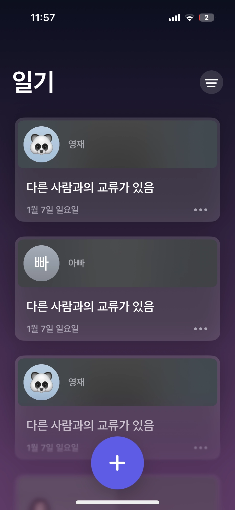: 예를 들어, 일기 앱에서 +버튼을 누르거 최근 항목 탭에서 지인과의 교류 기록(통화 기록)을 선택하면 ‘00님과의 교류에서 기억에 남는 점을 적어보세요, ’00님과의 교류는 어땠나요? 어떤 점을 감사하게 생각하나요?‘ 등의 질문거리를 던져주었습니다