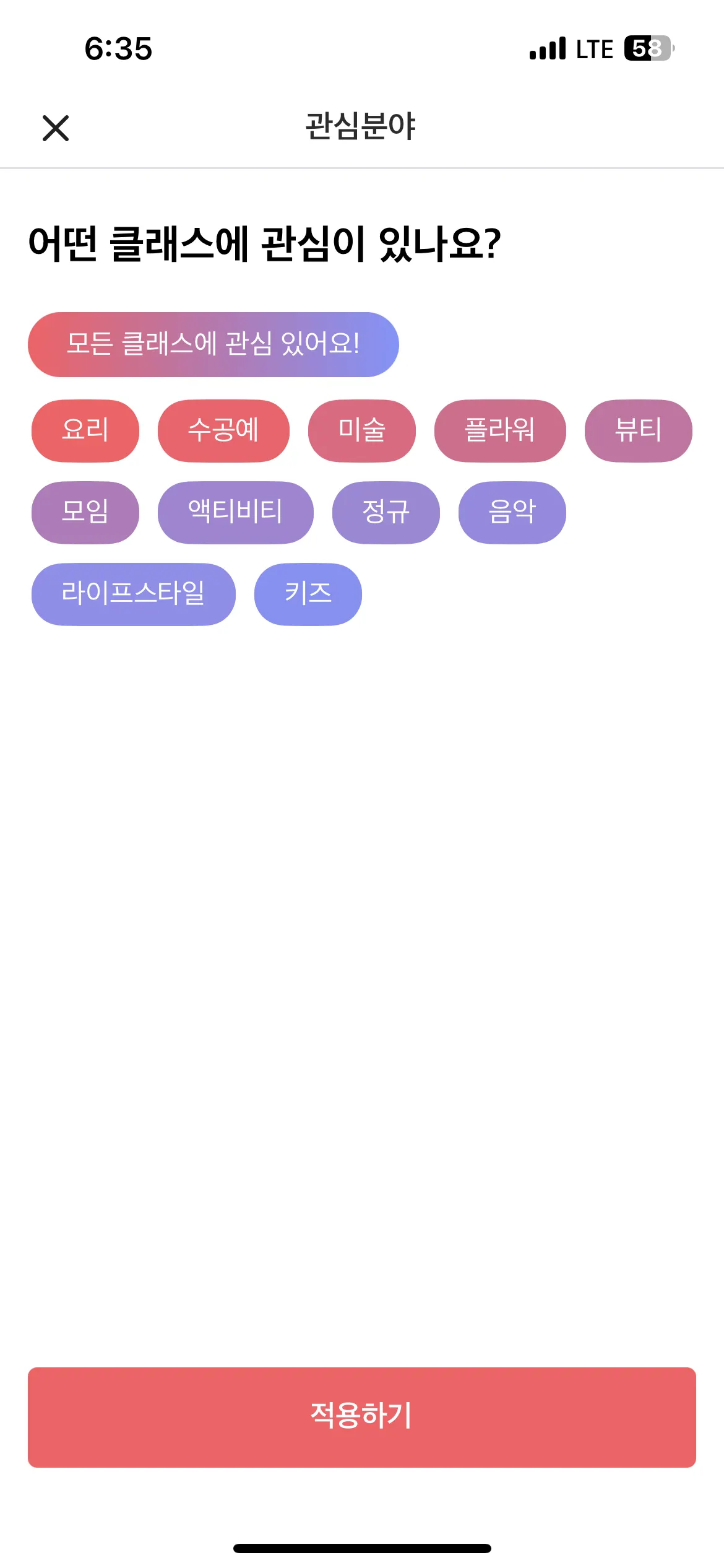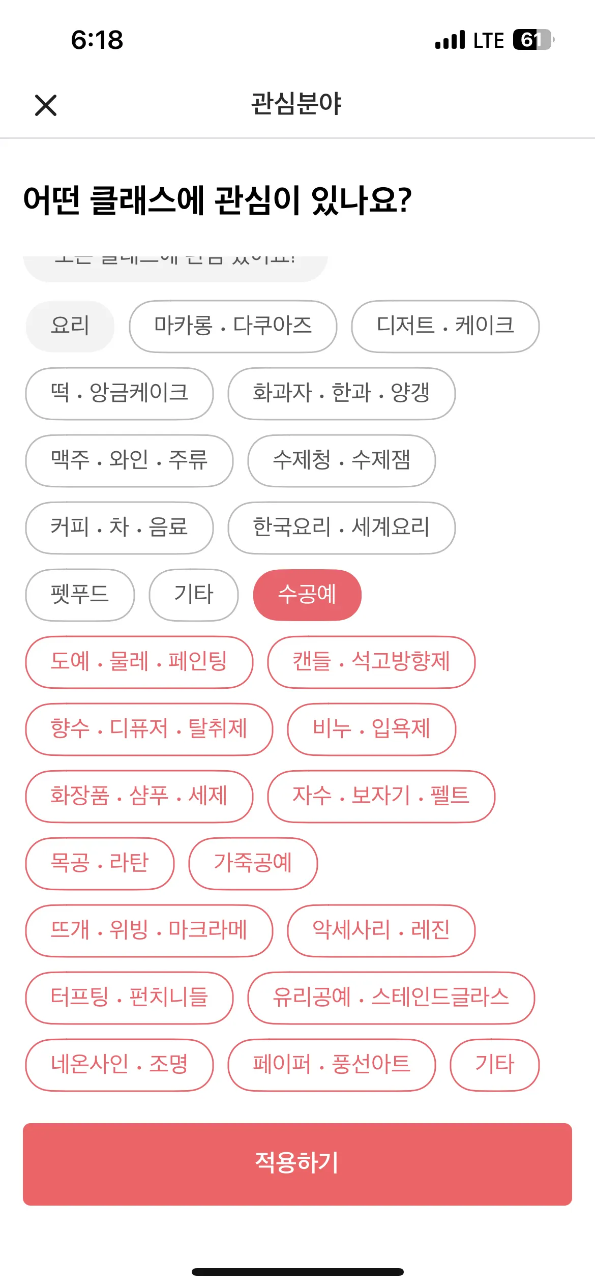 또한 예를 들어 요리 클래스를 클릭할때 세부적인 클래스 카테고리를 볼려면 더블탭해야한다.