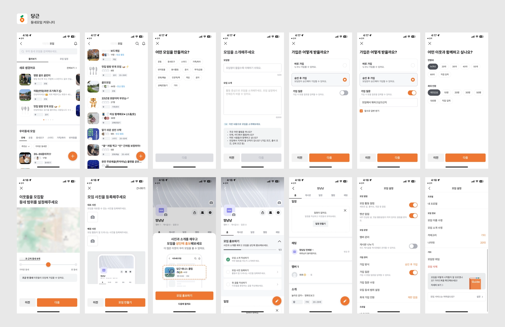동네 인증이 된 사람들과 함께 활동할 수 있는 모임을 만들 수 있어 온-오프라인을 연결지을 수 있는 서비스이다.