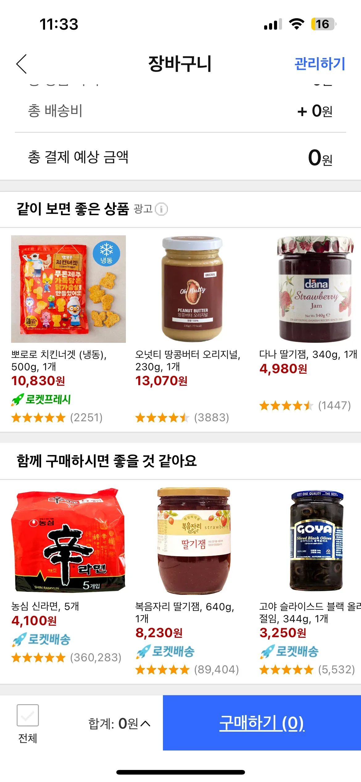 2. 장바구니 최하단: 같이 보면 좋은 상품(광고), 함께 구매하시면 좋을 것 같아요