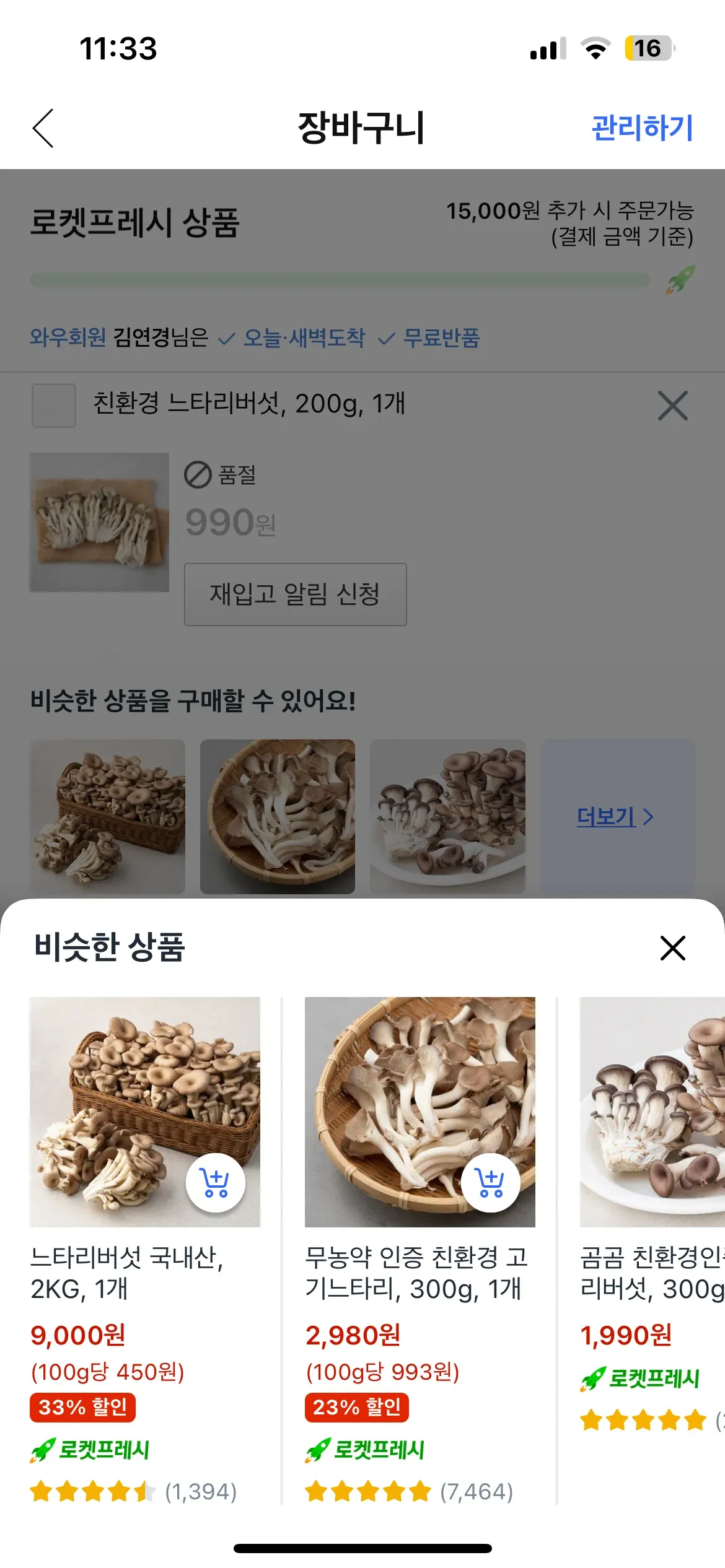 1. 장바구니에 담아 둔 상품이 품절일 때 : 비슷한 상품 추천