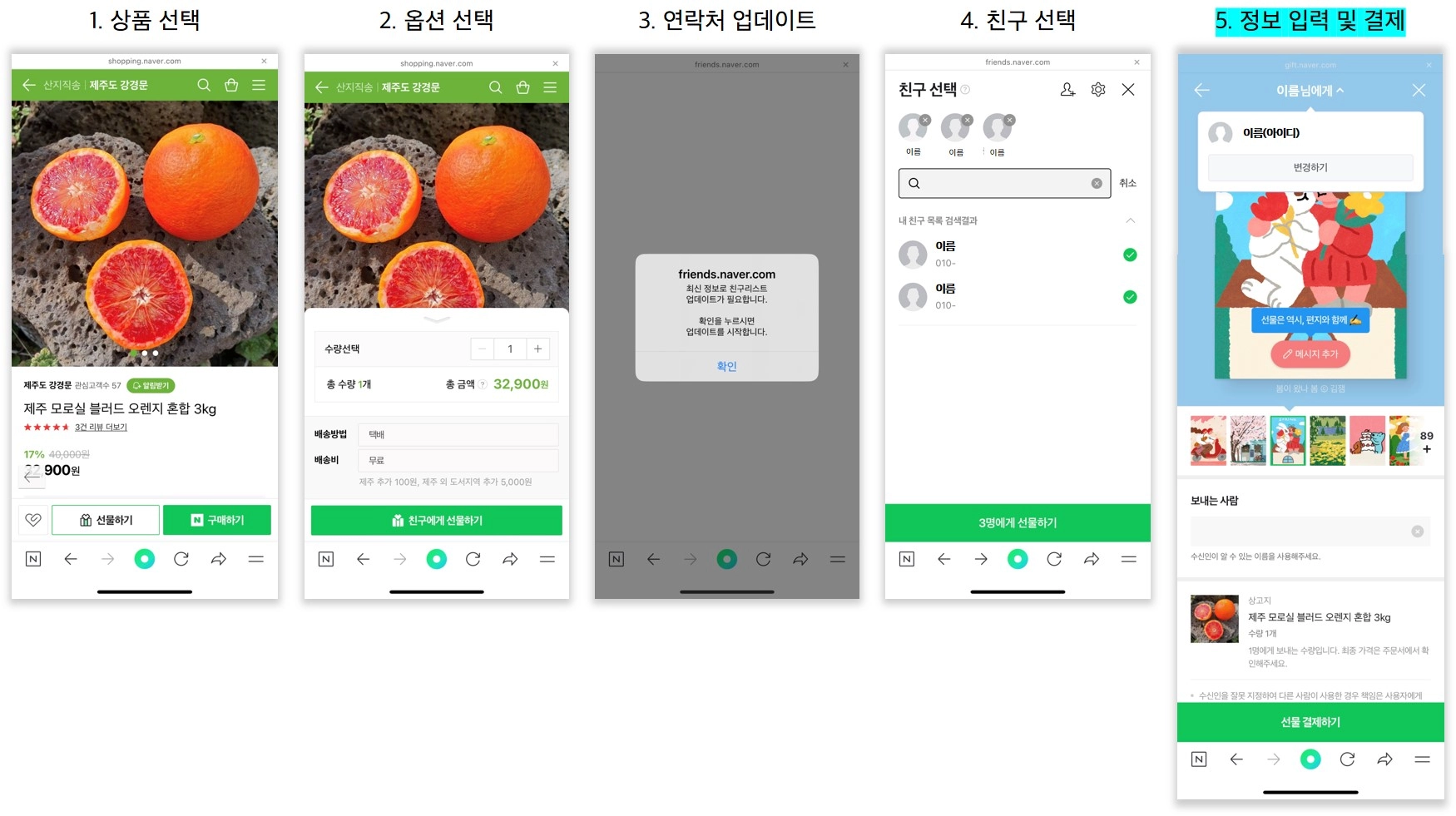 선물하기 기능(쿠팡, 네이버, 29CM)