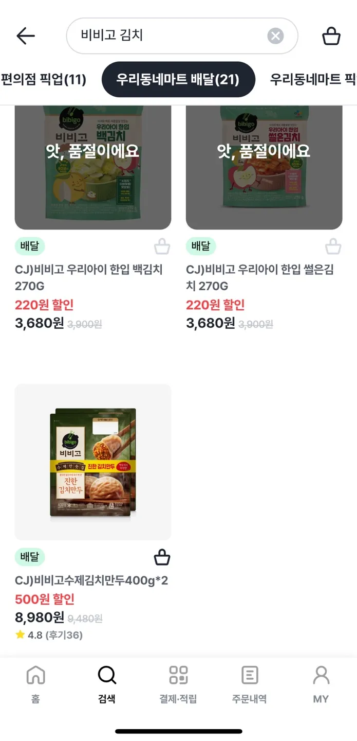아래 리스트는 우리동네마트 메인화면 ‘할인 및 행사 카테고리’ 문구다.