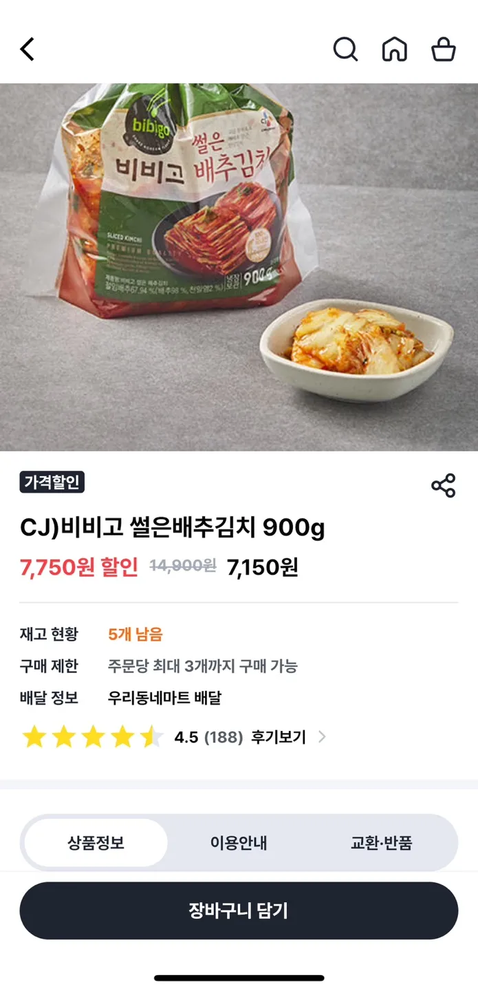 실시간 확인! 기능 상품 상세 > 상품 제목 하단 > [재고 현황] 사용자가 저장해 놓은 가까운 지역의 마트 내 > 사용자가 클릭한 상품의 ‘실시간 재고 수량’을 확인할 수 있는 기능이다.