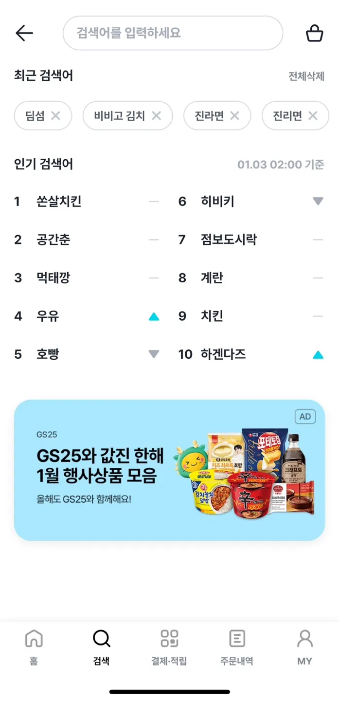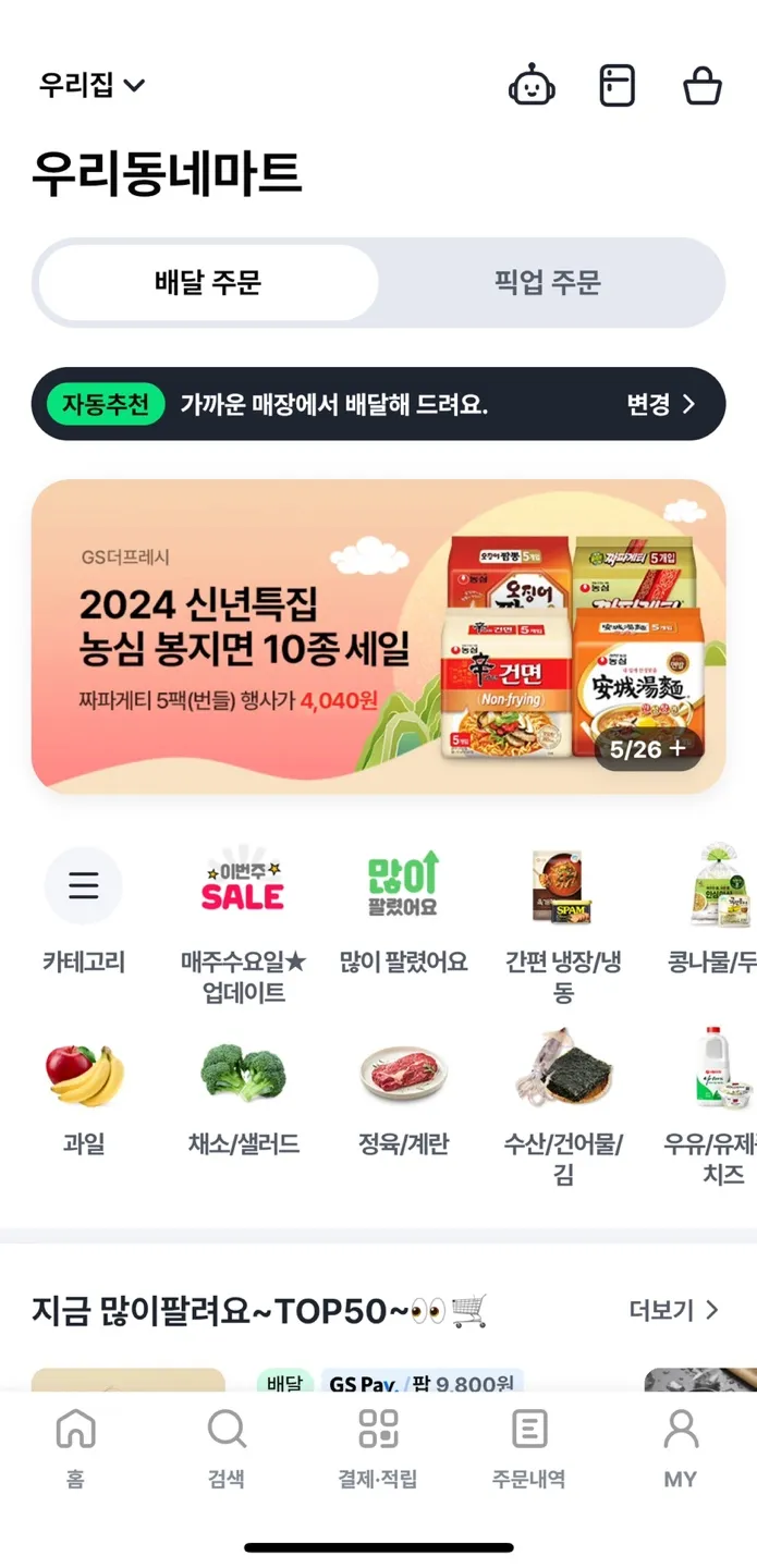 그중! GS THE FRESH 배달 메뉴! > 울동네마트배달 메뉴를 살펴 보았습니다.