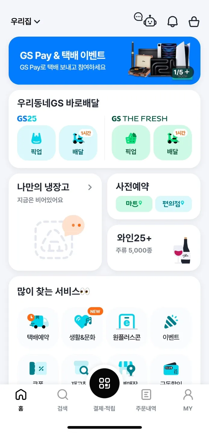 GS25와 GS & THE FRESH 상품들을 배달받을 수 있고, 원하는 지역에서 픽업가능하며, 나만의 냉장고를 통해 결제한 상품 보관, QR결제, 택배까지 다양한 서비스를 이용할 수 있는 GS25와 GS THE FRESH 통합 앱이다.