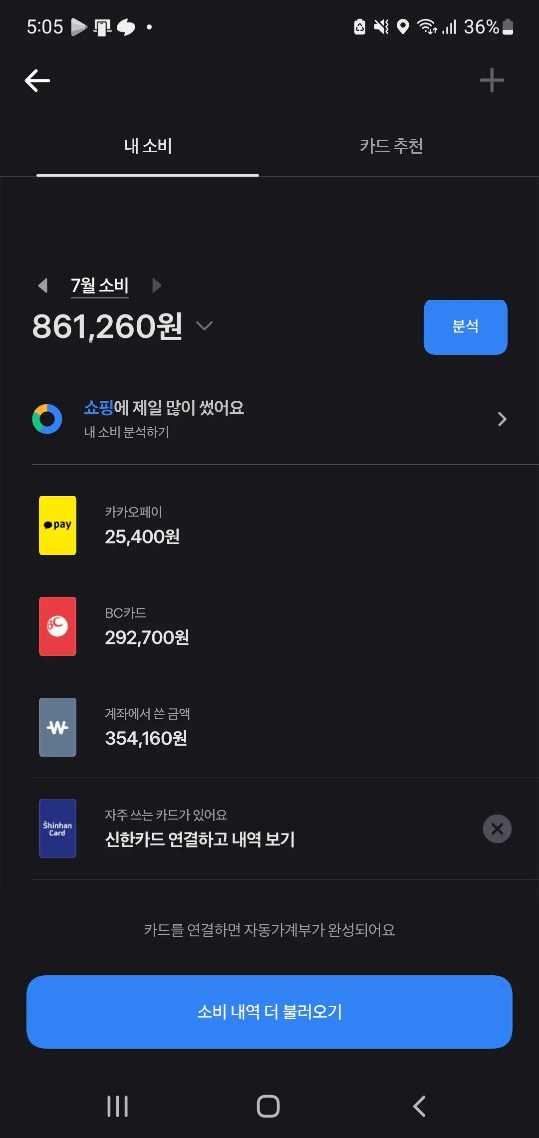 뱅크샐러드, 토스 _ 소비, 가계부 비교